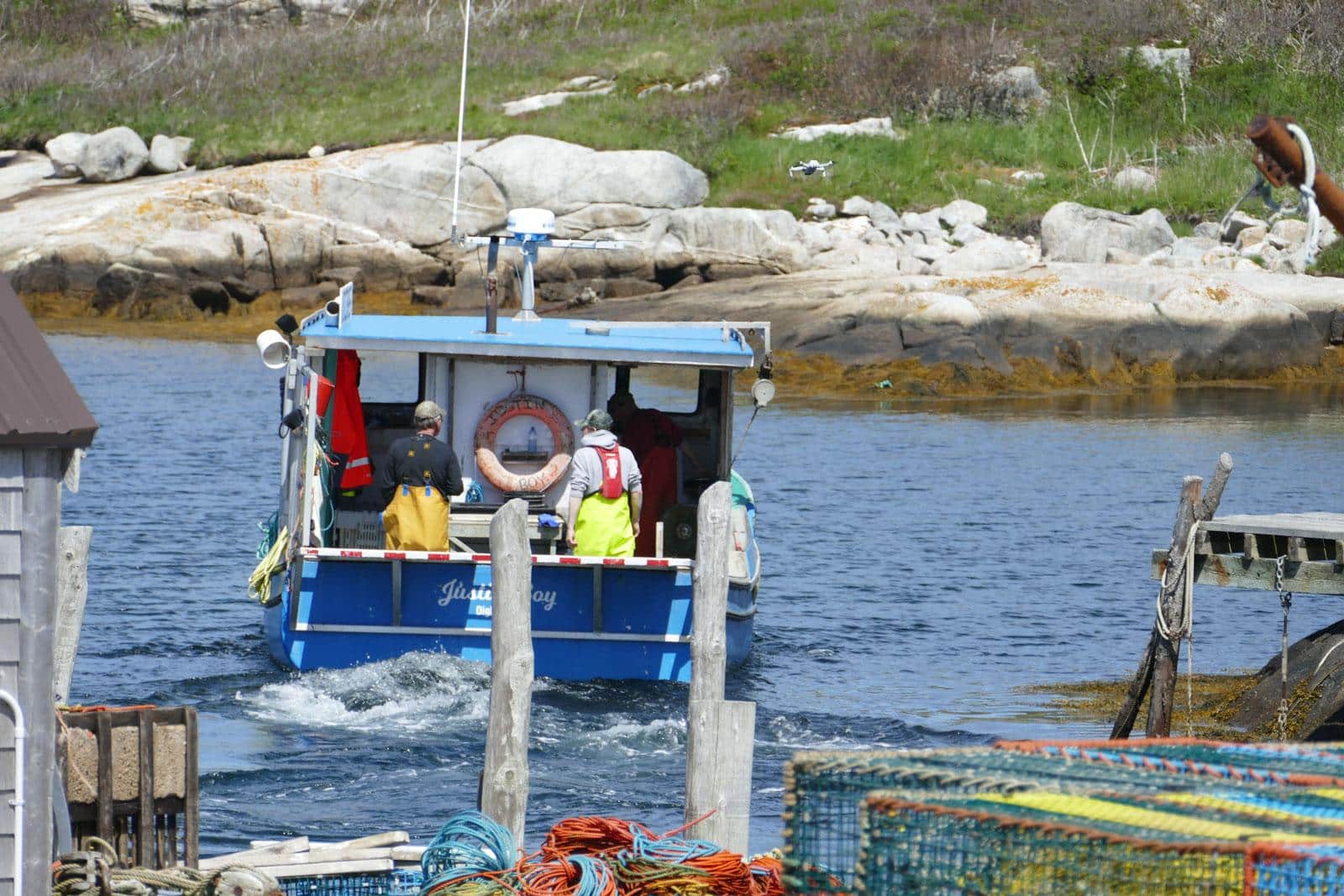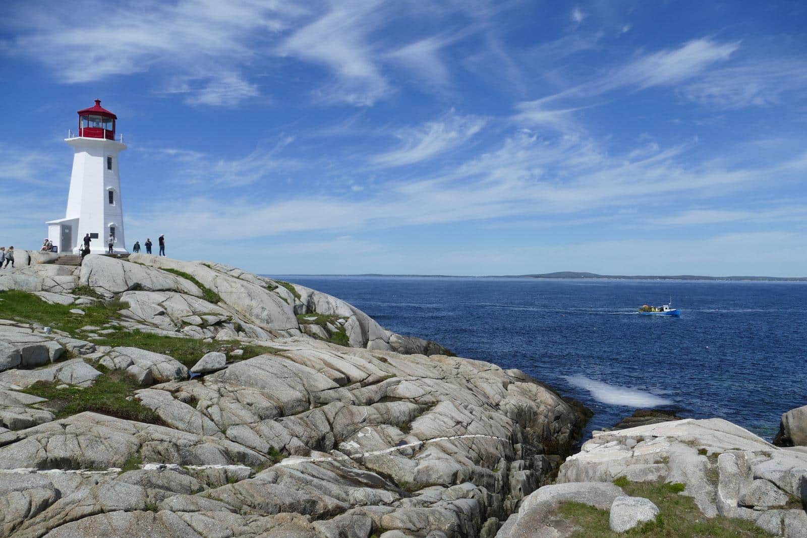 Das Wetter ist heute traumhaft. Keine Wolke ist am Himmel, als wir früh morgens aufwachen. Fürs Frühstück im Freien ist es noch etwas zu kühl. Wir sind schon vor 9:30 Uhr auf dem Weg zum Leuchtturm in Peggy’s Cove. Der Parkplatz ist noch leer und wir ratschen dort noch mit zwei Schweizer Aussteigern.