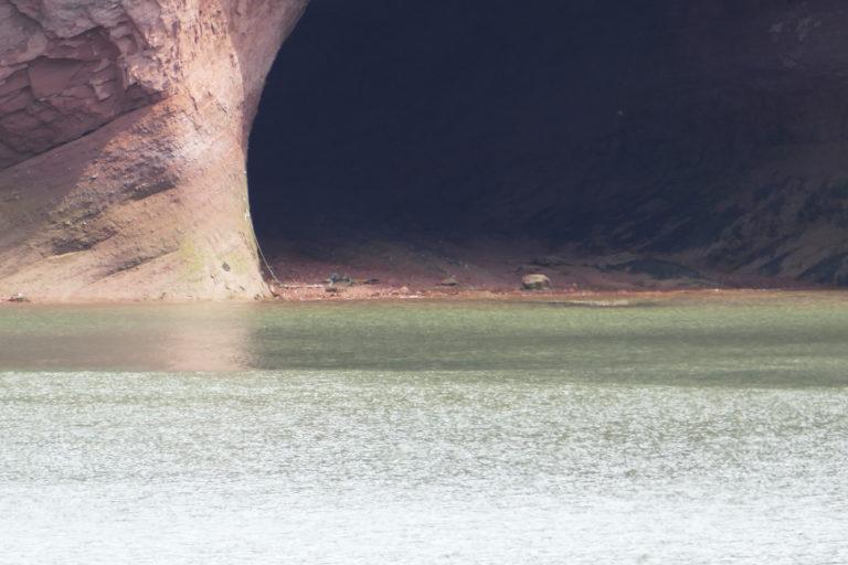 Als wir ankommen ist gerade Ebbe und wir können bis in die Höhlen marschieren. Bereits eine gute Stunde später kehrt das Wasser zurück und die Höhlen sind nicht mehr zu Fuß erreichbar.