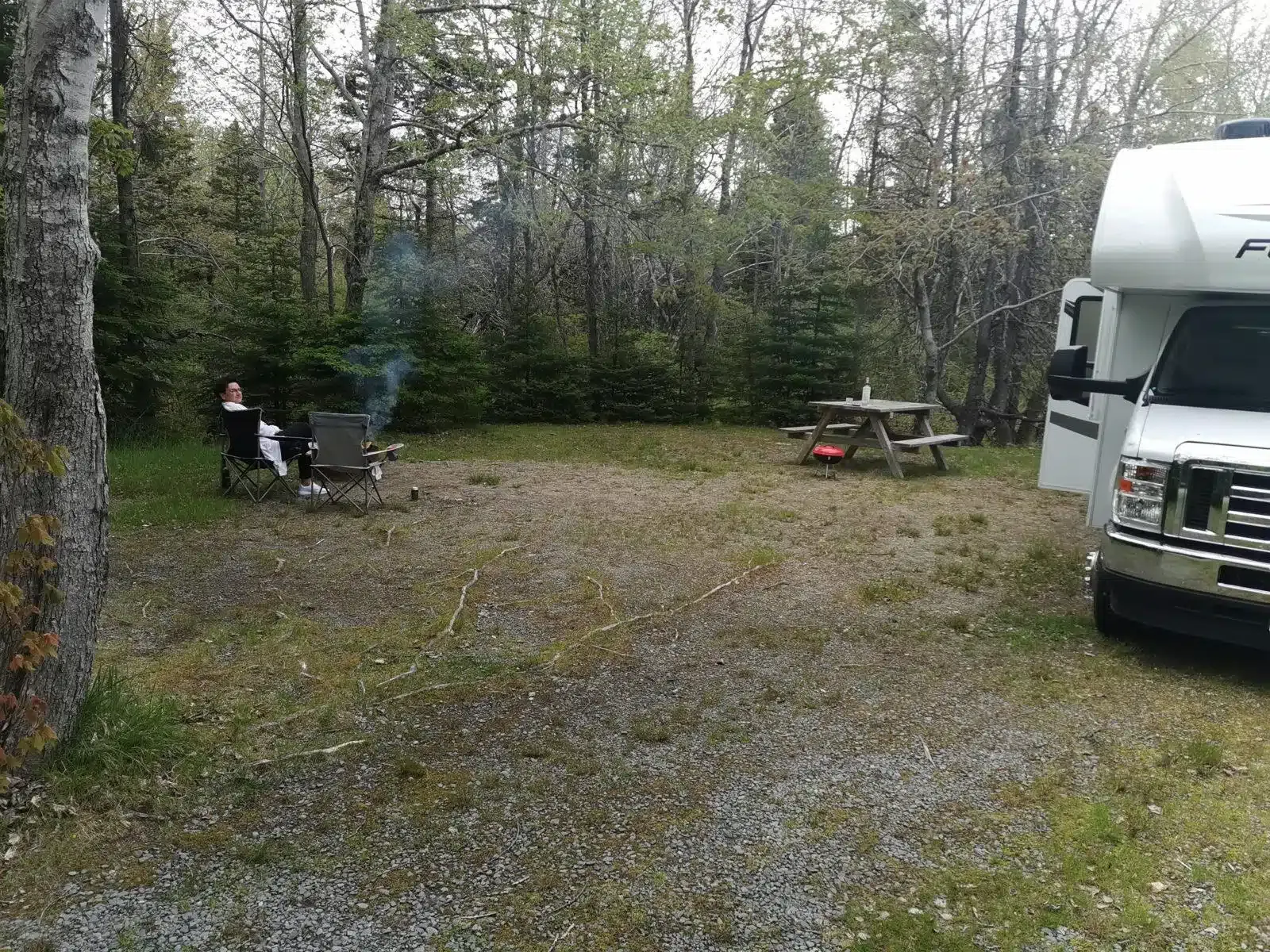 Abends erreichen wir den Thomas Raddall Provincial Park. Die letzten Kilometer Dirt Road fährt Sabine das erste Mal mit dem Wohnmobil.