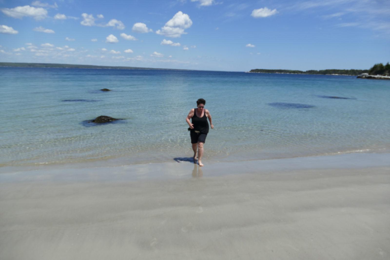 Schließlich brechen wir auf. Wir bleiben an Carter’s Beach stehen. Ein schneeweißer Traumstrand, wie er in der Karibik nicht schöner sein könnte. Nur das Wasser erinnert leider daran, dass wir uns am eiskalten Atlanktik befinden. Gefühlte 4 bis 7° Celsius laden nicht gerade zum Baden ein.